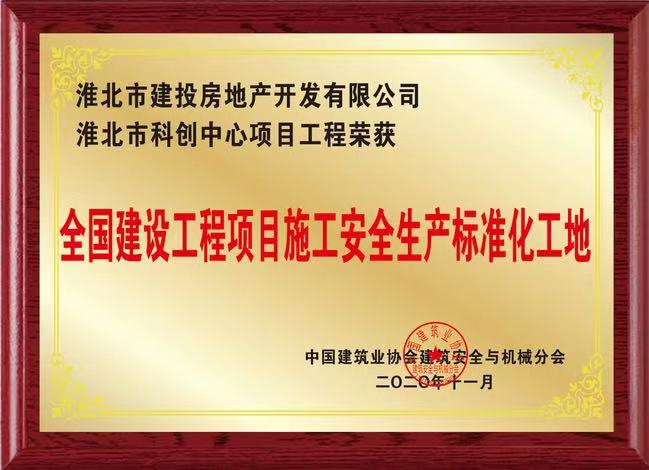 近日, 2020年中國建筑業(yè)安全生產(chǎn)管理經(jīng)驗(yàn)交流會(huì)在北京舉行。會(huì)上公布了2020年 “全國建設(shè)工程項(xiàng)目安全生產(chǎn)標(biāo)準(zhǔn)化工地”(全國AAA級安全文明標(biāo)準(zhǔn)化工地)名單。 集團(tuán)公司工程部淮北市科創(chuàng)中心項(xiàng)目工程榮獲 “全國建設(shè)工程項(xiàng)目安全生產(chǎn)標(biāo)準(zhǔn)化工地”榮譽(yù)。