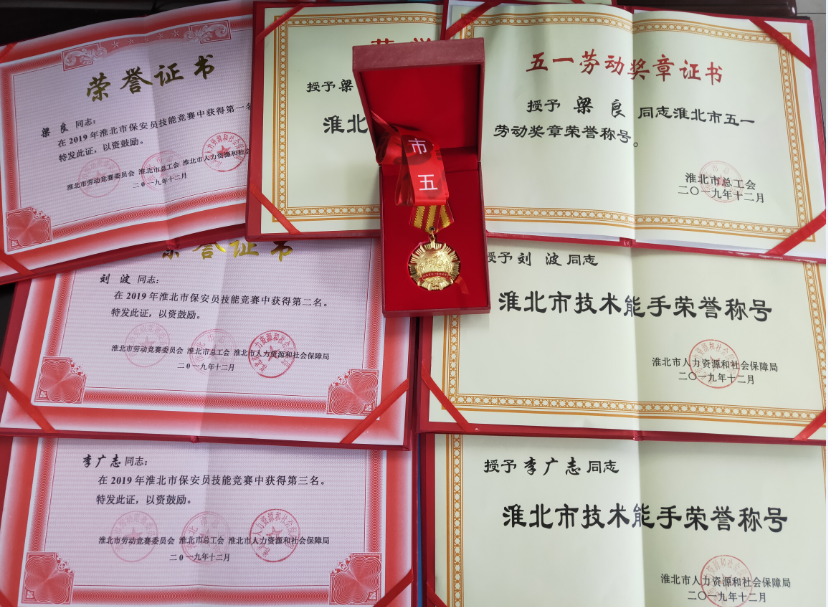 全市保安員技能競(jìng)賽,第一名淮北市保安有限公司梁良,被市總工會(huì)授予“淮北市五一勞動(dòng)獎(jiǎng)?wù)?rdquo;榮譽(yù)稱(chēng)號(hào),被市人力資源和社會(huì)保障局授予“淮北市技術(shù)能手”榮譽(yù)稱(chēng)號(hào);第二名淮北市保安有限公司劉波、第三名淮北市保安有限公司李廣志被市人力資源和社會(huì)保障局授予“淮北市技術(shù)能手”榮譽(yù)稱(chēng)號(hào)。