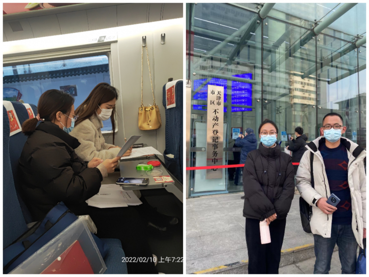 由于抵押物在天津,疫情防控形勢緊張,本著為民辦實事、為企解憂愁的宗旨,支部書記趙瑩瑩迅速部署任務(wù)分工,包括聯(lián)系天津和平區(qū)防控中心了解防控政策、預(yù)約不動產(chǎn)登記中心、安排業(yè)務(wù)經(jīng)理申請核酸報告及規(guī)劃行程路線,在確保防控措施的基礎(chǔ)上,順利完成任務(wù);業(yè)務(wù)經(jīng)理朱夢珍、高圣杰于2月10日7時出發(fā),在火車上完成合同簽訂,下午3時順利完成抵押登記手續(xù),傍晚6時乘車返回淮北,用實際行動踐行為民辦實事的初衷。