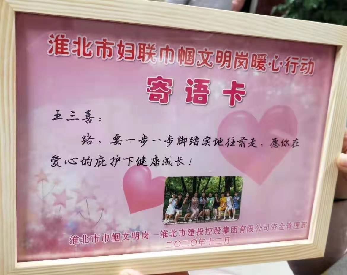 圖為12月10日市建投集團(tuán)資金管理部代表參加淮北市“巾幗文明崗暖心行”活動——走進(jìn)百善,為百善鎮(zhèn)16 名貧困兒童送去圖書、學(xué)習(xí)用具以及勵志寄語,溫暖了貧困兒童的心。