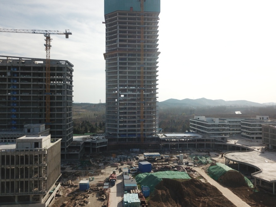 淮北第一高樓——商務(wù)政務(wù)中心采用框架核心筒結(jié)構(gòu),建筑面積超7萬(wàn)平方米,設(shè)計(jì)復(fù)雜、施工難度大,地下室出正負(fù)零后以平均7天一層的速度向上生長(zhǎng),工程部副部長(zhǎng)張玉坤駐點(diǎn)管理,項(xiàng)目在做到質(zhì)量、安全雙優(yōu)的同時(shí),以不到一年的時(shí)間實(shí)現(xiàn)封頂,刷新淮北速度。項(xiàng)目不僅提前完成了年度節(jié)點(diǎn)目標(biāo),而且先后獲得2020年“安徽省建筑安全生產(chǎn)標(biāo)準(zhǔn)化工地”、“全國(guó)AAA安全文明標(biāo)準(zhǔn)化工地項(xiàng)目”的省級(jí)、國(guó)家級(jí)榮譽(yù),在全市范圍內(nèi)先后召開(kāi)了兩次市住建局主辦的建筑質(zhì)量安全現(xiàn)場(chǎng)觀(guān)摩會(huì),下一步將爭(zhēng)創(chuàng)“黃山杯”及“國(guó)優(yōu)”工程,做到進(jìn)度、質(zhì)量?jī)刹徽`。目前南區(qū)各主樓結(jié)構(gòu)已全部封頂,二次結(jié)構(gòu)、安裝工程完成70%,即將進(jìn)入幕墻和裝飾裝修穿插施工階段。