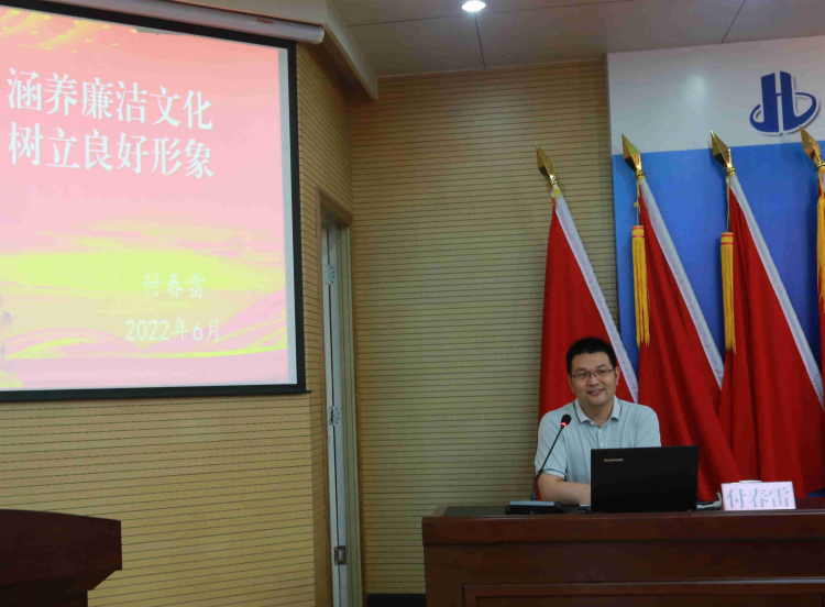 付春雷主任以“涵養(yǎng)廉潔文化,樹立良好形象”為主題,從廉潔文化的變遷,廉潔文化建設的內(nèi)涵等三個方面解讀了廉潔文化建設的重要意義。付春雷結合自身學習領悟和長期工作實踐,讓大家深入了解廉潔的含義為:“一曰廉善,二曰廉能,三曰廉敬,四曰廉正,五曰廉法,六曰廉辨”。通過加強新時代廉潔文化建設,一體推進不敢腐、不能腐、不想腐,深化系統(tǒng)施治、標本兼治的重要舉措。廣大黨員干部要守好清廉底線,用清廉為干事奠基,慎初慎微,勤政為民,在廉潔干事、廉潔成事中樹立起新時代黨員干部忠誠干凈擔當?shù)牧己眯蜗蟆?/span>