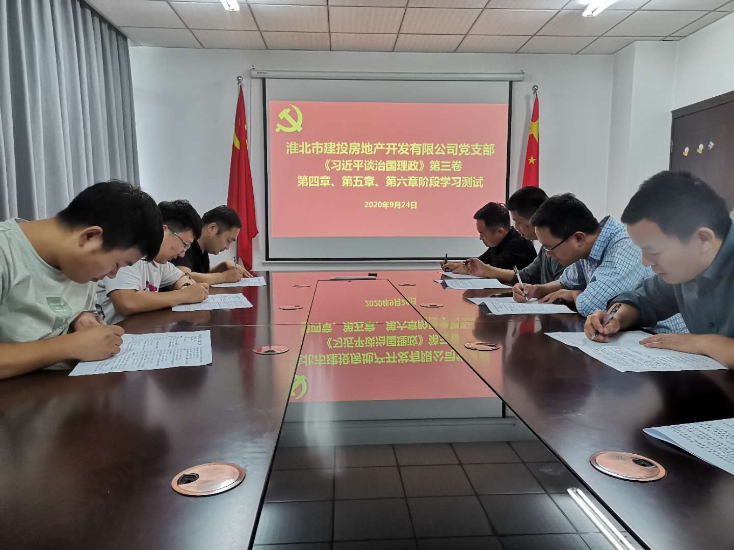 房地產(chǎn)黨支部9月24日組織全體黨員、入黨積極分子在會議室開展《習(xí)近平談治國理政》第三卷重要知識點測試。