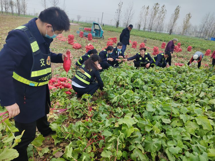 今年11月正值蘿卜上市的關(guān)鍵時(shí)期,可是偏偏遇上疫情來(lái)襲,愁壞了臨渙鎮(zhèn)前袁樓村的農(nóng)戶,因缺少勞動(dòng)力,銷售渠道也減少,蘿卜滯銷。堅(jiān)守在S202收費(fèi)站的黨員干部了解到該情況后,在積極應(yīng)對(duì)疫情防控的同時(shí),主動(dòng)對(duì)接農(nóng)戶,收費(fèi)之余組織站內(nèi)員工來(lái)到田間地頭,在農(nóng)戶的指導(dǎo)下,協(xié)助采收、打包、搬運(yùn),大家忙得熱火朝天。本次助農(nóng)活動(dòng),不僅收獲了勞動(dòng)豐收的喜悅,勞作之余,在場(chǎng)的每名員工還自掏腰包購(gòu)買(mǎi)滯銷蘿卜,用實(shí)際行動(dòng)為群眾辦實(shí)事,辦好事,為鄉(xiāng)村振興貢獻(xiàn)了微薄之力,受到當(dāng)?shù)匕傩盏囊恢潞迷u(píng)。