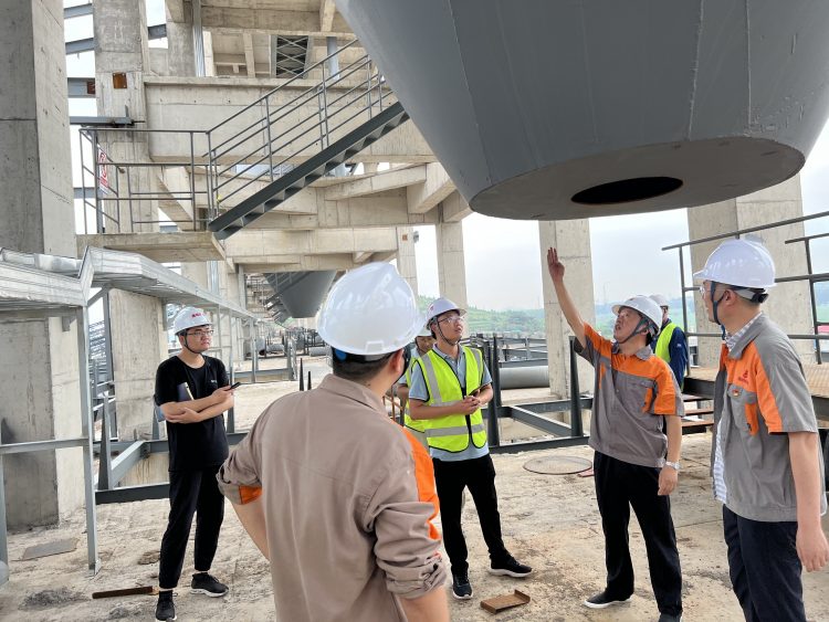 劉鵬總經(jīng)理一行先后對(duì)儲(chǔ)存發(fā)運(yùn)B區(qū)鋼結(jié)構(gòu)、儲(chǔ)存發(fā)運(yùn)A區(qū)至B區(qū)廊道、三篩至儲(chǔ)存發(fā)運(yùn)區(qū)鋼結(jié)構(gòu)等區(qū)域的安全生產(chǎn)管理、現(xiàn)場(chǎng)施工作業(yè)、已完工工程安全質(zhì)量等方面進(jìn)行了仔細(xì)查看和詳細(xì)了解,并與現(xiàn)場(chǎng)管理人員進(jìn)行深入交流。