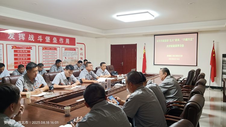 8月18日下午,淮海建工公司項目部黨支部召開圍繞“五大”要求、“六破六立”大討論動員學習會,項目部黨支部全體黨員同志參加會議。