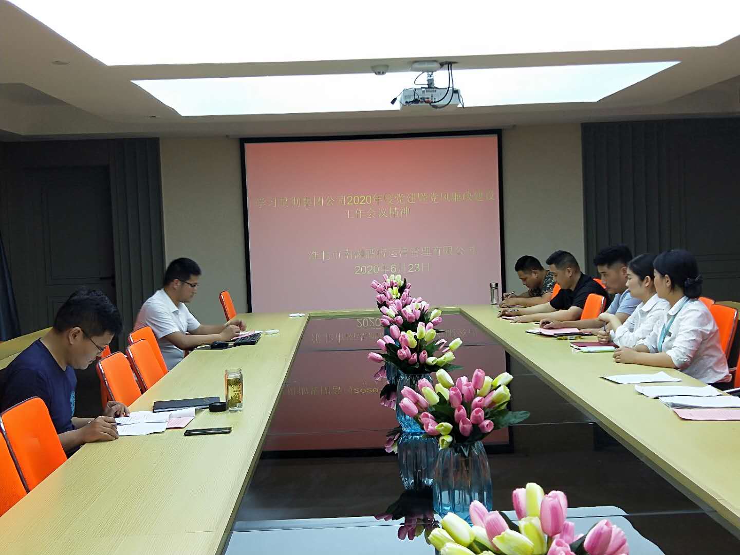 6月23日下午,南湖酒店黨支部組織全體黨員及部分員工在公司二樓會(huì)議室學(xué)習(xí)傳達(dá)集團(tuán)公司2020年度黨建暨黨風(fēng)廉政建設(shè)工作會(huì)議精神。