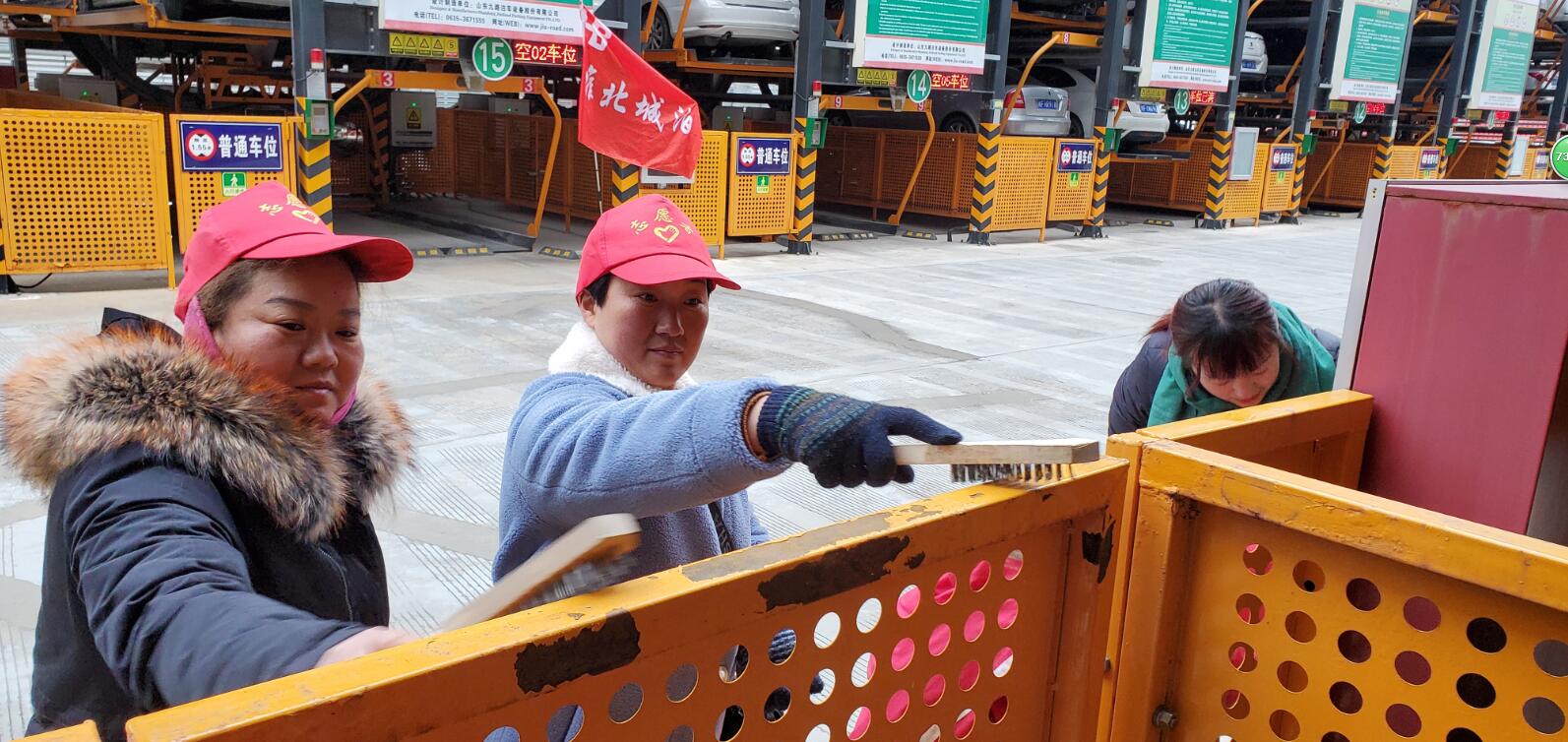 迎新春、換新顏——城泊支部組織黨員日清掃維護(hù)立體停車場(chǎng)
