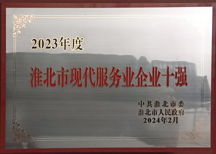 淮北市建投商貿(mào)有限公司再次榮獲全市“現(xiàn)代服務(wù)業(yè)企業(yè)十強(qiáng)”榮譽(yù)稱號