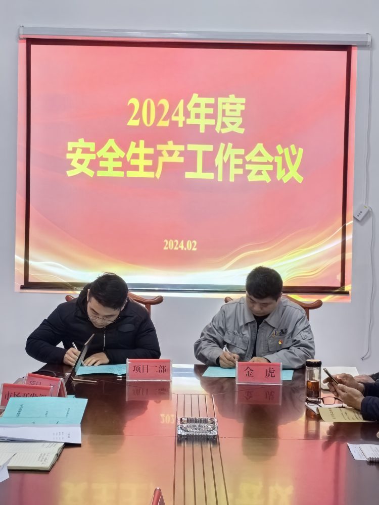 會(huì)上,公司副總經(jīng)理劉勇、金虎分別與各部室、項(xiàng)目部負(fù)責(zé)人簽訂了《2024年安全生產(chǎn)目標(biāo)管理責(zé)任書》。