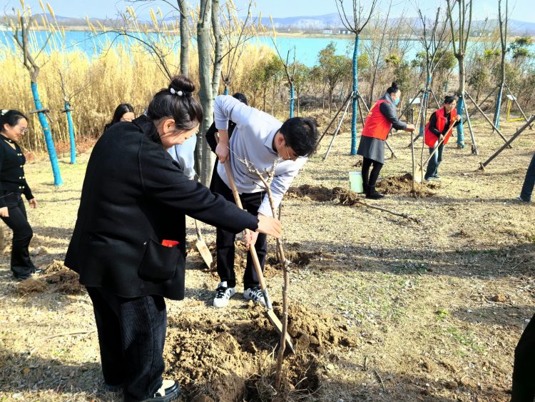 迎著微風(fēng),大家?guī)瞎ぞ?,熱情高漲、干勁十足,積極投入到植樹(shù)活動(dòng)中。揮鍬鏟土、栽苗培土、踩實(shí)土壤,大家協(xié)作配合,現(xiàn)場(chǎng)一派火熱繁忙景象。活動(dòng)中共栽植30余棵樸樹(shù),栽種樹(shù)苗整體錯(cuò)落有致,生機(jī)盎然,為綠金湖增添了一道靚麗的風(fēng)景線。