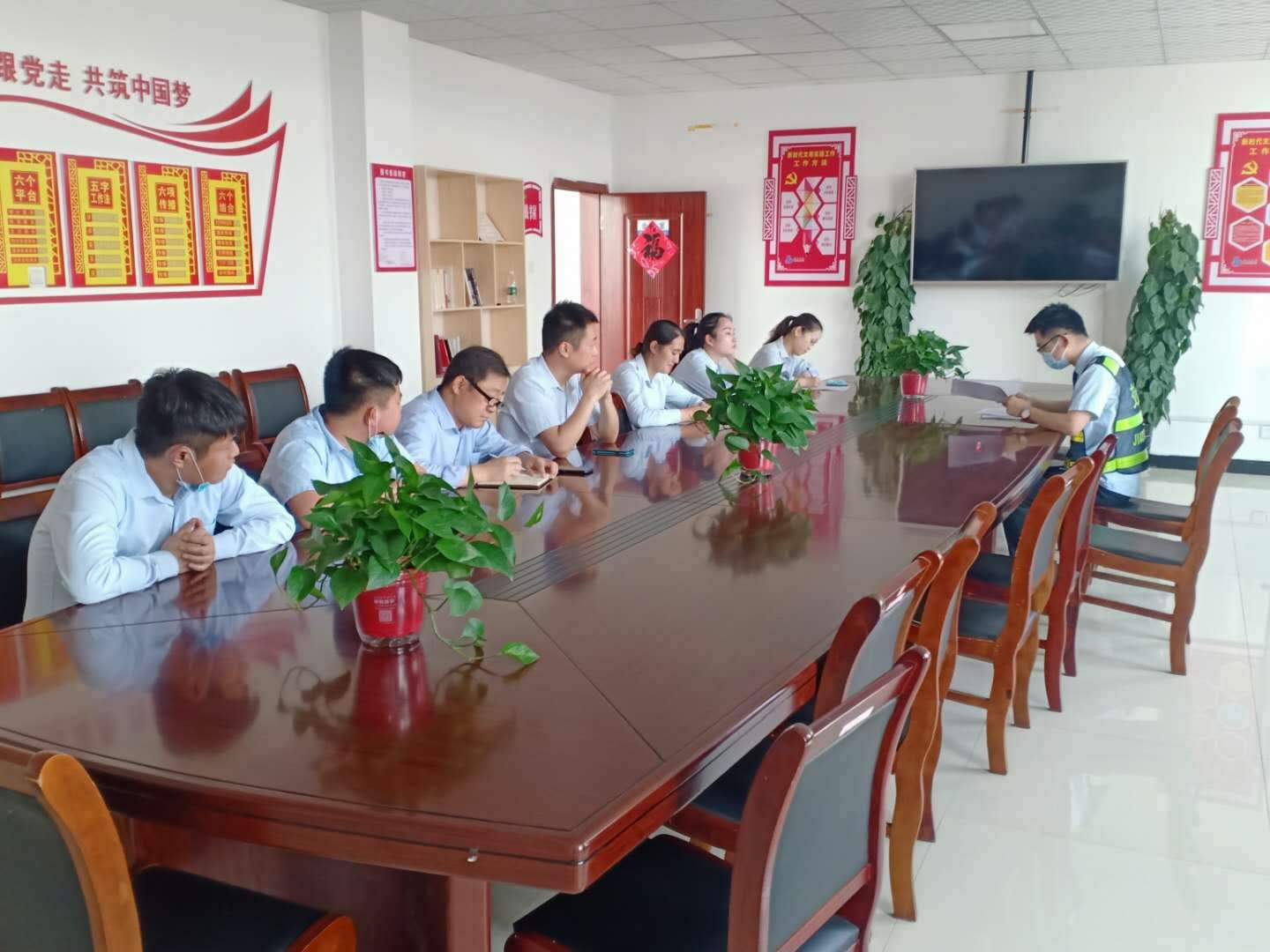 5月27日,融通公司黨支部將“黨建一點(diǎn)課”與收費(fèi)站班務(wù)會相結(jié)合,組織收費(fèi)站各部室人員學(xué)習(xí)《S202淮北收費(fèi)站安全管理制度》、《S202淮北收費(fèi)站票款日清制度》、《淮北市融通實(shí)業(yè)有限公司物資采購管理辦法》,同時進(jìn)行黨建工作相關(guān)知識的宣傳,并與大家共同分享融通黨支部疫情防控期間先進(jìn)事跡,通過本次會議,增強(qiáng)了公司職工的集體榮譽(yù)感,也為開展融通黨支部黨建融合提升工作邁出了第一步。