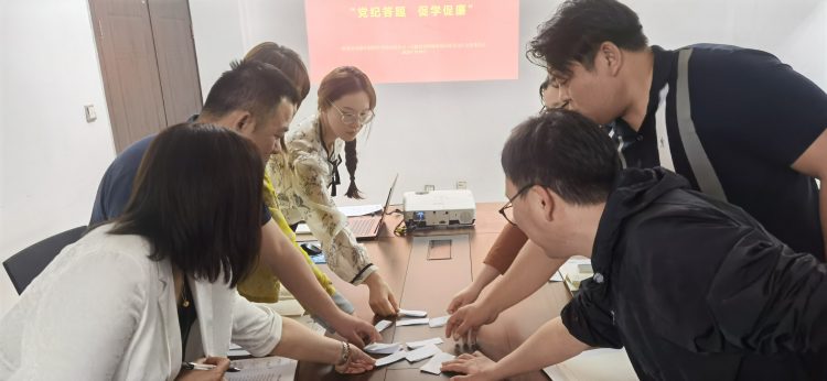 此次活動(dòng)分為兩個(gè)階段。第一階段是支部書記對(duì)《中國共產(chǎn)黨紀(jì)律處分條例》進(jìn)行解讀;第二階段采取黨員抽題的形式,根據(jù)自己抽到的黨紀(jì)題目進(jìn)行現(xiàn)場答題并展開討論。