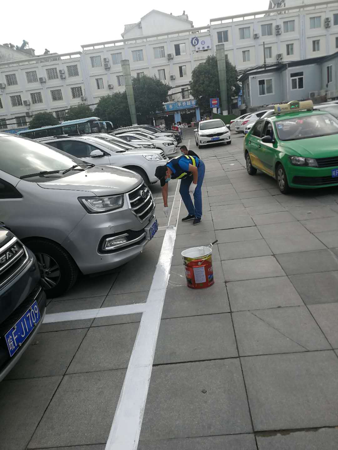 助力創(chuàng)建全國(guó)文明城市,城泊公司員工用汗水施劃停車泊位線