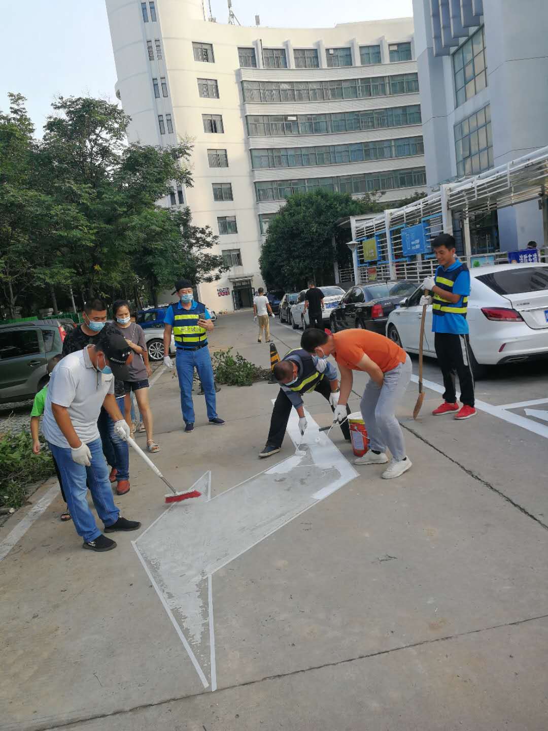 由于人民醫(yī)院住院部停車泊位緊張、車輛停放密集,施工必須在停放車輛駛出清場(chǎng)后,才能進(jìn)行。為了不影響市民停車避開停車高峰,公司工作人員需要在中午、凌晨乃至半夜進(jìn)行劃線任務(wù)。雖然辛苦,但是我們畫起線來(lái)一絲不茍,為了減少雨水對(duì)停車線的侵蝕,畫停車線時(shí)反復(fù)多次施劃增加耐久度,為了整齊美觀,施劃每一條線時(shí)都會(huì)用標(biāo)尺認(rèn)真的比量。看似簡(jiǎn)單的復(fù)描劃線工作,實(shí)際上仍存在很大的工作阻力,市民因?yàn)椴荒艿谝粫r(shí)間停車有所抱怨對(duì)我們工作人員的工作造成了一定的困擾,但是我們依舊積極協(xié)調(diào)、解釋和溝通,圓滿的完成了復(fù)描任務(wù),讓原本斑駁的車位線煥然一新。