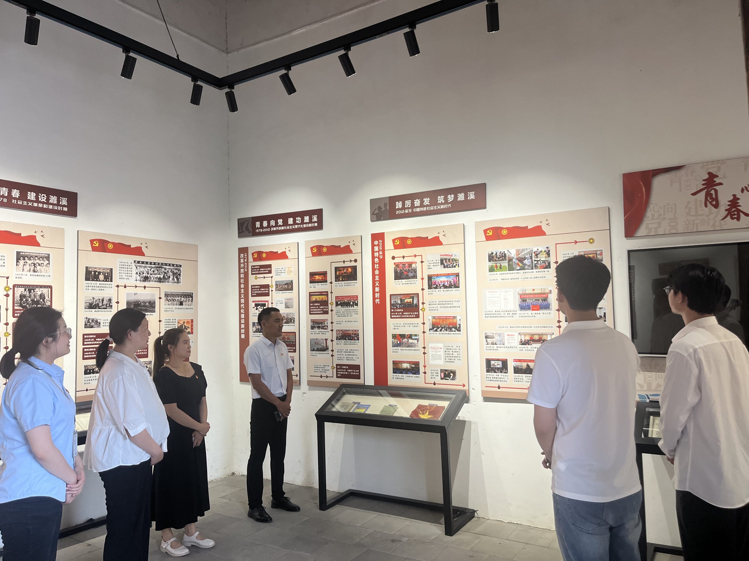 在濉溪石板街,黨員們走進(jìn)中共濉溪支部陳列館,陳列館內(nèi)容分為四個(gè)部分:馬克思主義在濉溪的傳播、中共濉溪支部的成立、濉溪黨組織發(fā)展壯大以及濉溪早起黨史人物。一幅幅歷史畫面、一件件文物展現(xiàn)了當(dāng)年黨支部成立時(shí)的場景,展示著建黨初期的濉溪革命史實(shí)。