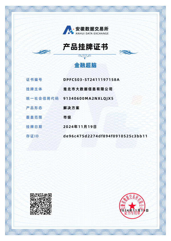 數(shù)據(jù)產(chǎn)品掛牌上市正式開啟數(shù)據(jù)交易之旅,持續(xù)擴大“金融超腦”產(chǎn)品的影響力,促進我市普惠金融業(yè)務(wù)均衡發(fā)展,推動大眾創(chuàng)業(yè)、萬眾創(chuàng)新,助推經(jīng)濟發(fā)展方式轉(zhuǎn)型升級。同時,憑借在金融超腦平臺上的普惠金融助貸數(shù)據(jù)集,淮北市大數(shù)據(jù)信息有限公司順利申請到數(shù)據(jù)知識產(chǎn)權(quán),進一步彰顯了公司在數(shù)據(jù)資源開發(fā)利用與合規(guī)管理方面的卓越能力與前瞻性布局。