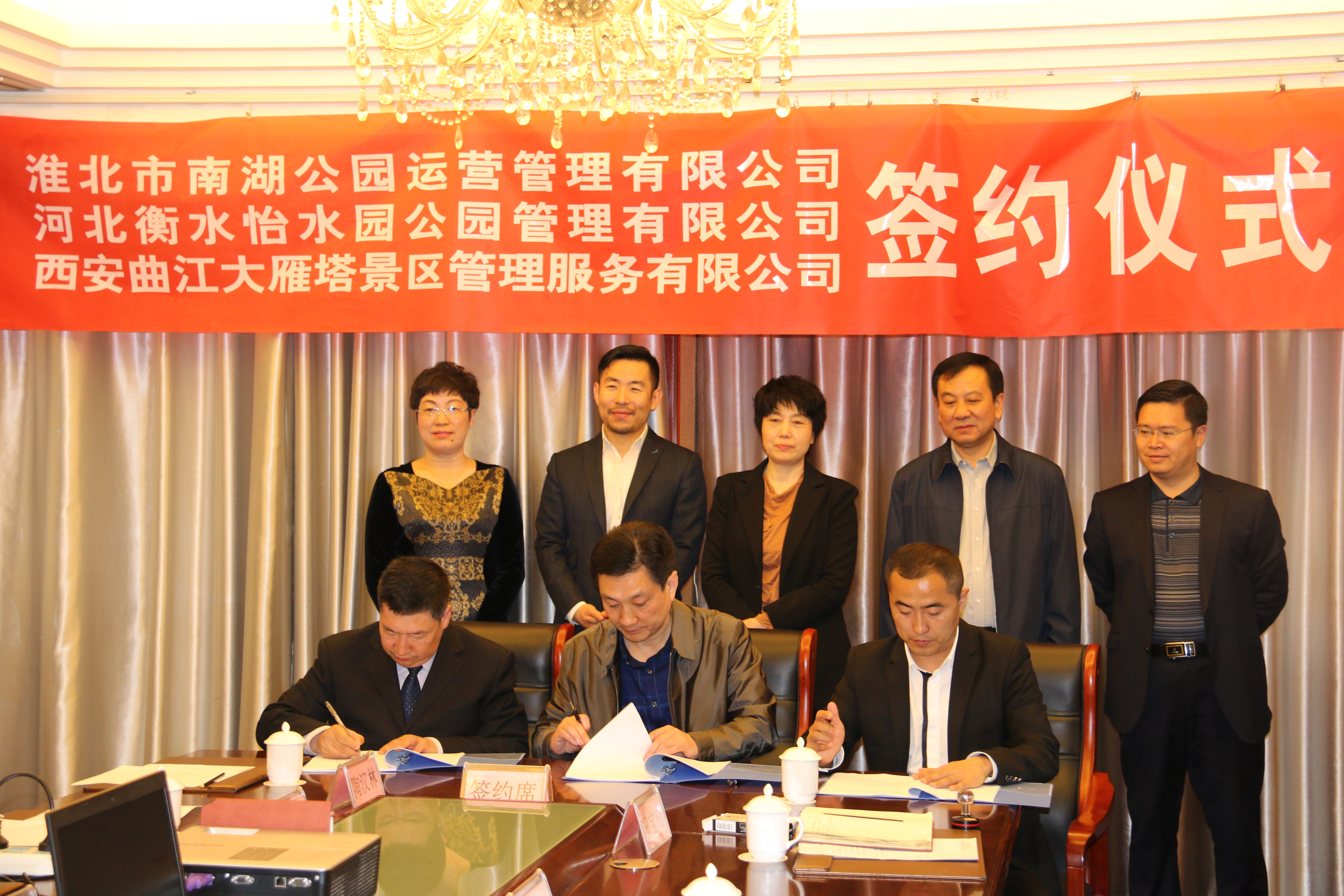 4月7日上午,南湖公園運(yùn)營(yíng)管理有限公司、河北衡水怡水園公園管理有限公司、西安曲江大雁塔景區(qū)管理服務(wù)有限公司就南湖景區(qū)托管項(xiàng)目舉行了簽約儀式。市政協(xié)副主席錢丹嬰等出席儀式并見證簽約。