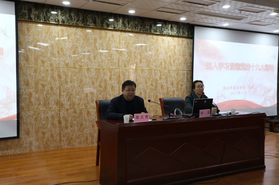 為深入學習宣傳貫徹好黨的十九大精神,幫助廣大黨員干部群眾學習好、領(lǐng)會好、落實好會議精神,11月24日上午,省委講師團第九期“送理論進基層”走進淮北市建投集團?;幢笔形v團成員、淮北職業(yè)技術(shù)學院黨委委員、副院長、教授、博士張亞為淮北市建投集團廣大黨員干部宣講了黨的十九大精神,來自集團公司的黨員干部近200人聆聽了宣講。