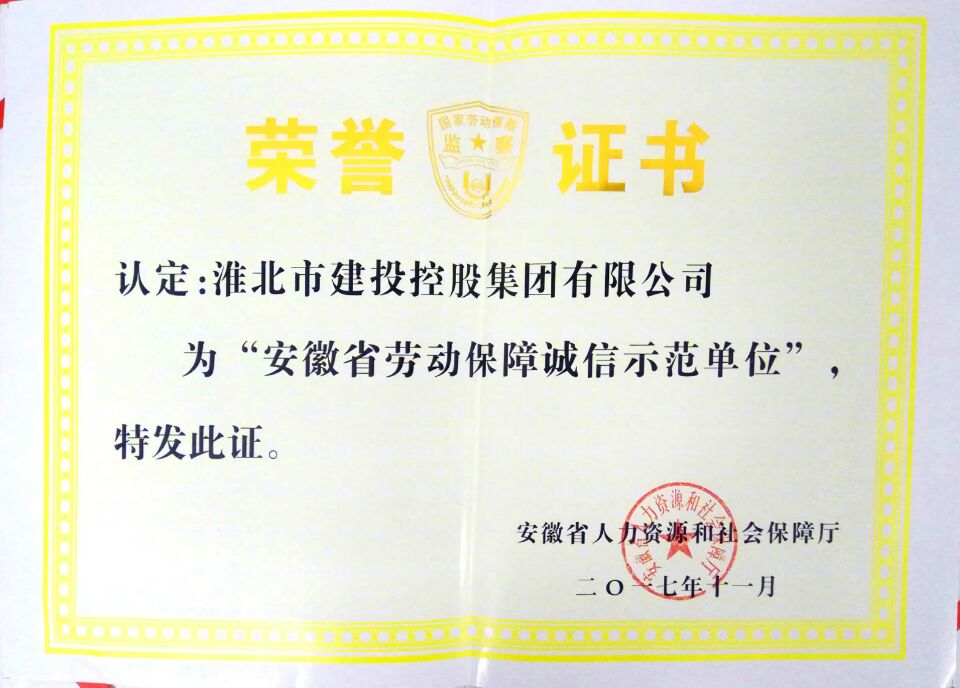 淮北市建投集團(tuán)榮獲安徽省勞動(dòng)保障誠(chéng)信示范單位