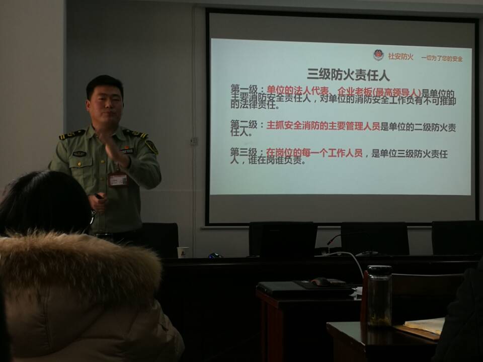 活動(dòng)中,宣傳教官采取PPT課件宣講的方式向干部職工大力宣傳消防知識(shí),并現(xiàn)場向廣大干部職工講解火災(zāi)的危險(xiǎn)性和防火措施;單位員工消防安全四個(gè)能力建設(shè),單位消防設(shè)備的性能、滅火器材的使用方法;報(bào)火警,家庭撲救初起火災(zāi)以及自救逃生的知識(shí)和技能等。