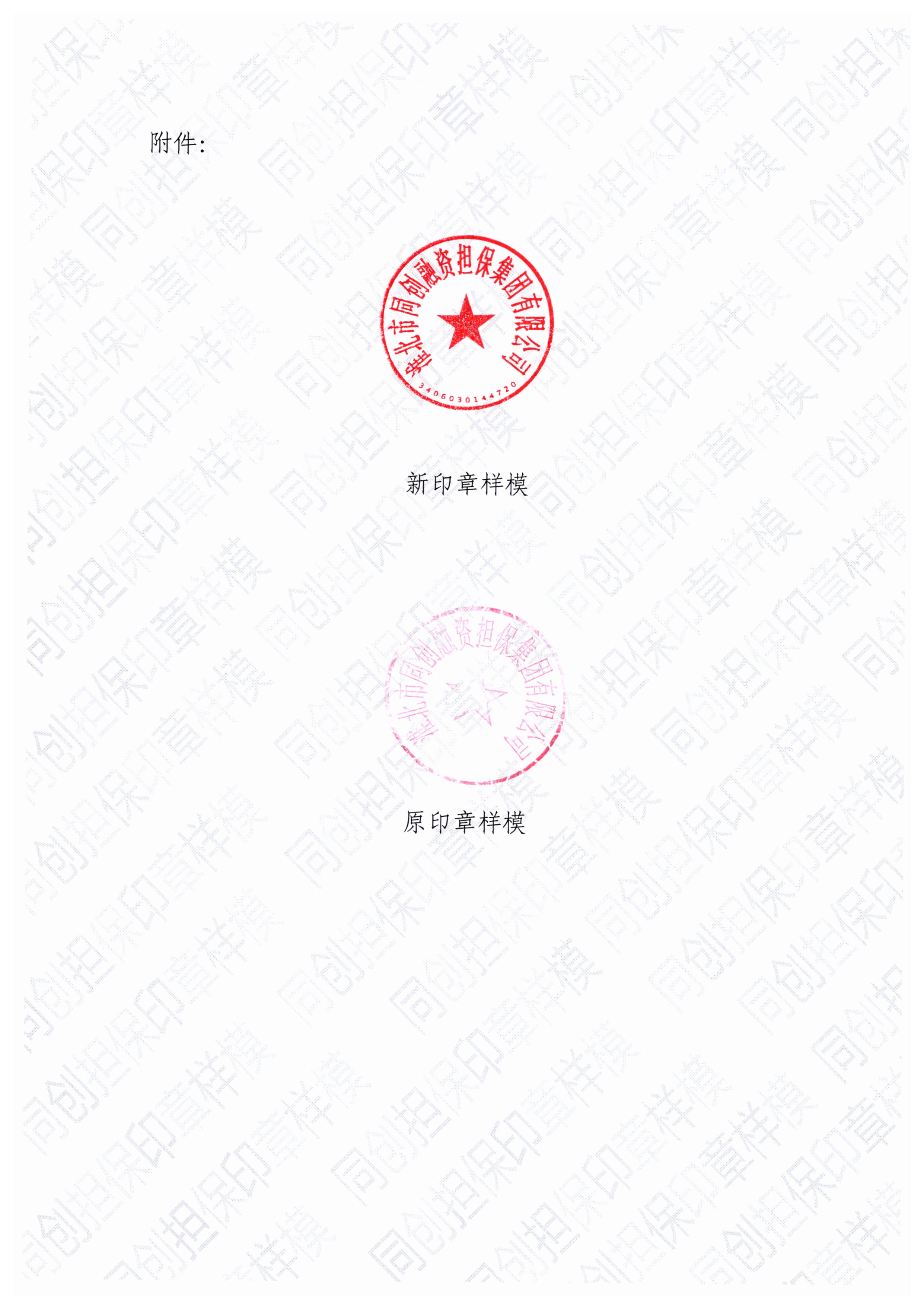 關(guān)于淮北市同創(chuàng)融資擔(dān)保集團(tuán)有限公司啟用新印章的通知