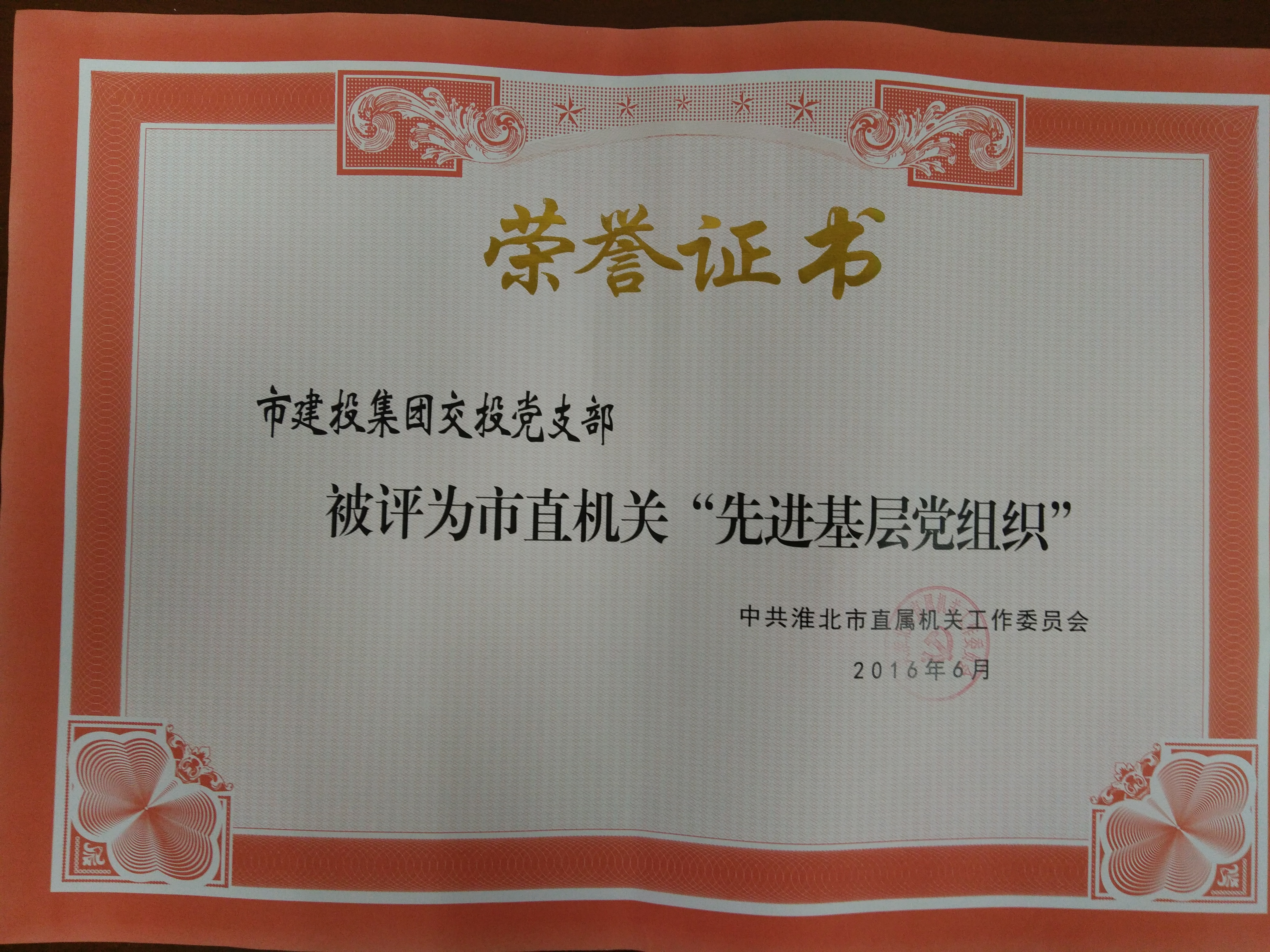在慶祝中國共產(chǎn)黨成立95周年之際,市交投公司黨支部被授予“2016年度市直機(jī)關(guān)先進(jìn)基層黨支部”榮譽(yù)稱號(hào)。
