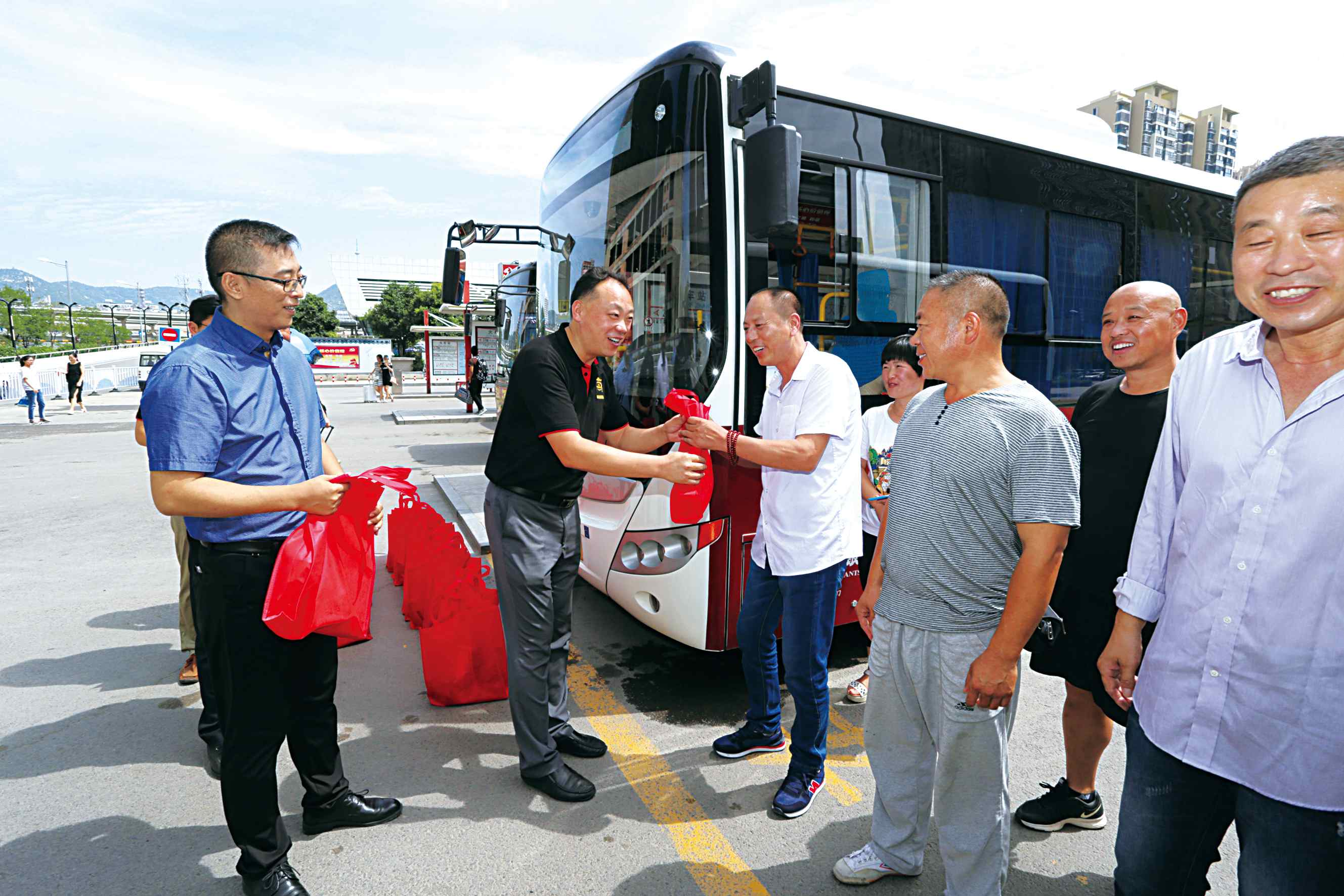 每到一處,南投黨支部慰問(wèn)組都會(huì)將內(nèi)含毛巾、香皂、飲料、洗衣液等防暑降溫用品的清涼包一一送到一線職工手中,細(xì)心囑咐他們?cè)诟邷靥鞖庀鹿ぷ饕欢ㄒ⒁庾陨戆踩妥龊梅朗罱禍?,并向他們?yōu)榛幢笔形拿鲃?chuàng)建發(fā)展付出的辛勤勞動(dòng)表示衷心的感謝。拿到清涼包的職工們紛紛表示,有各級(jí)黨委和組織的關(guān)愛,一定會(huì)努力工作,為廣大市民營(yíng)造更加優(yōu)質(zhì)的出行服務(wù)。