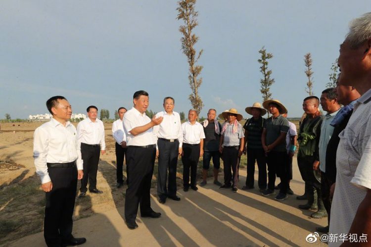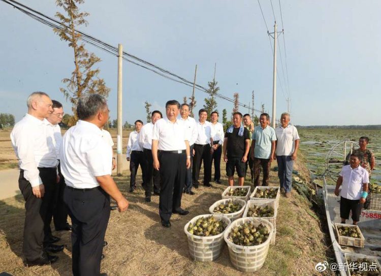 習近平總書記18日赴安徽考察調(diào)研。當天下午,他先后來到阜陽市阜南縣王家壩閘、紅亮箱包有限公司、蒙洼蓄洪區(qū)曹集鎮(zhèn)利民村西田坡莊臺,察看淮河水情,走進田間地頭,了解當?shù)胤姥淳葹暮蜑暮蠡謴蜕a(chǎn)等情況,看望慰問受災群眾。(文字記者:張曉松 攝影記者:鞠鵬 王曄)