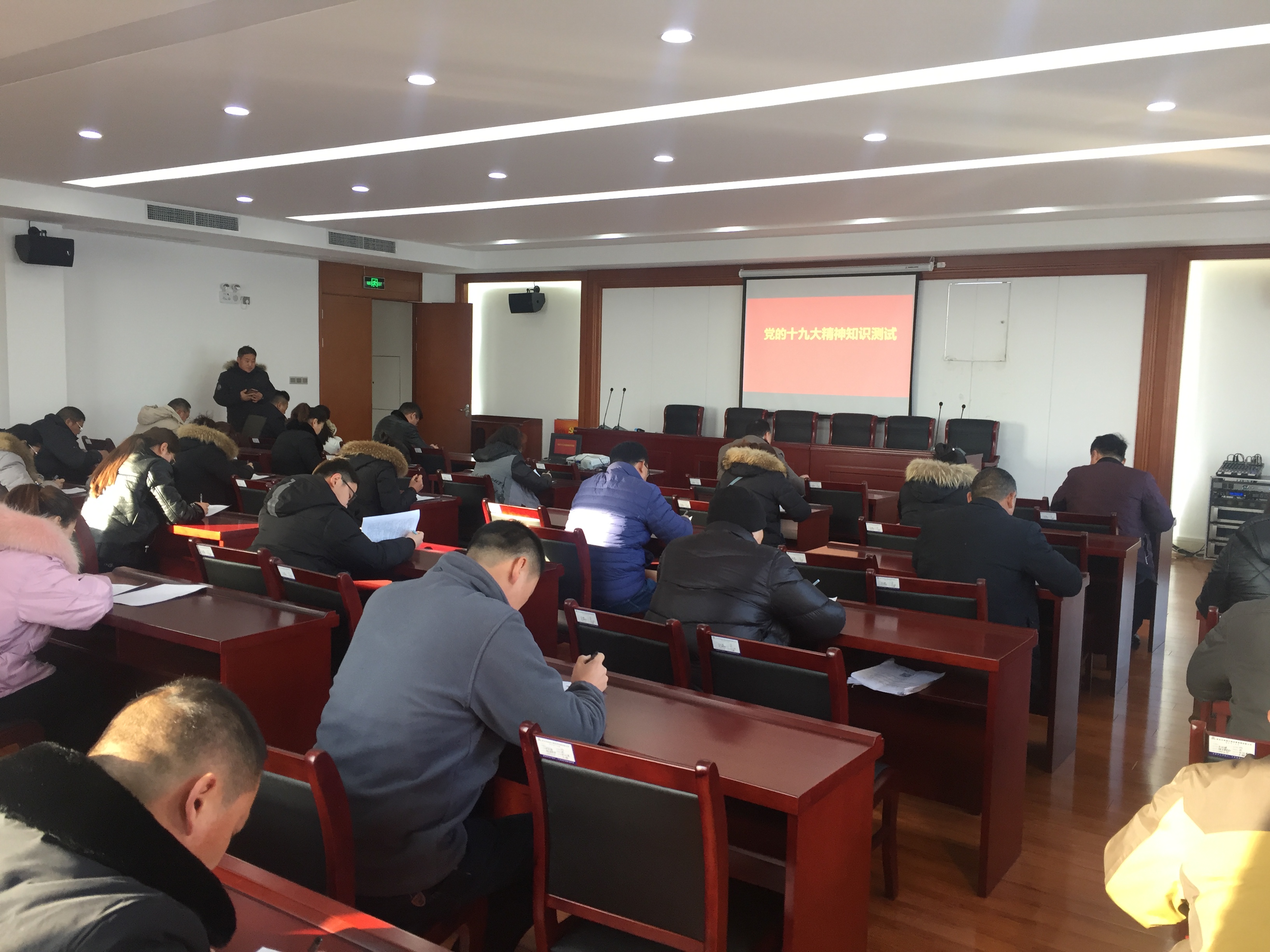 為深入學(xué)習(xí)宣傳貫徹黨的十九大精神,全面貫徹落實習(xí)近平新時代中國特色社會主義思想,把廣大黨員和干部員工的思想統(tǒng)一到黨的十九大精神上來,南投黨支部于2018年1月10日上午9點組織南湖運營公司、南湖酒店公司全體黨員干部職工進行黨的十九大精神知識測試。此次測試為閉卷形式,滿分100分,分為單選題、判斷題和簡答題三部分。