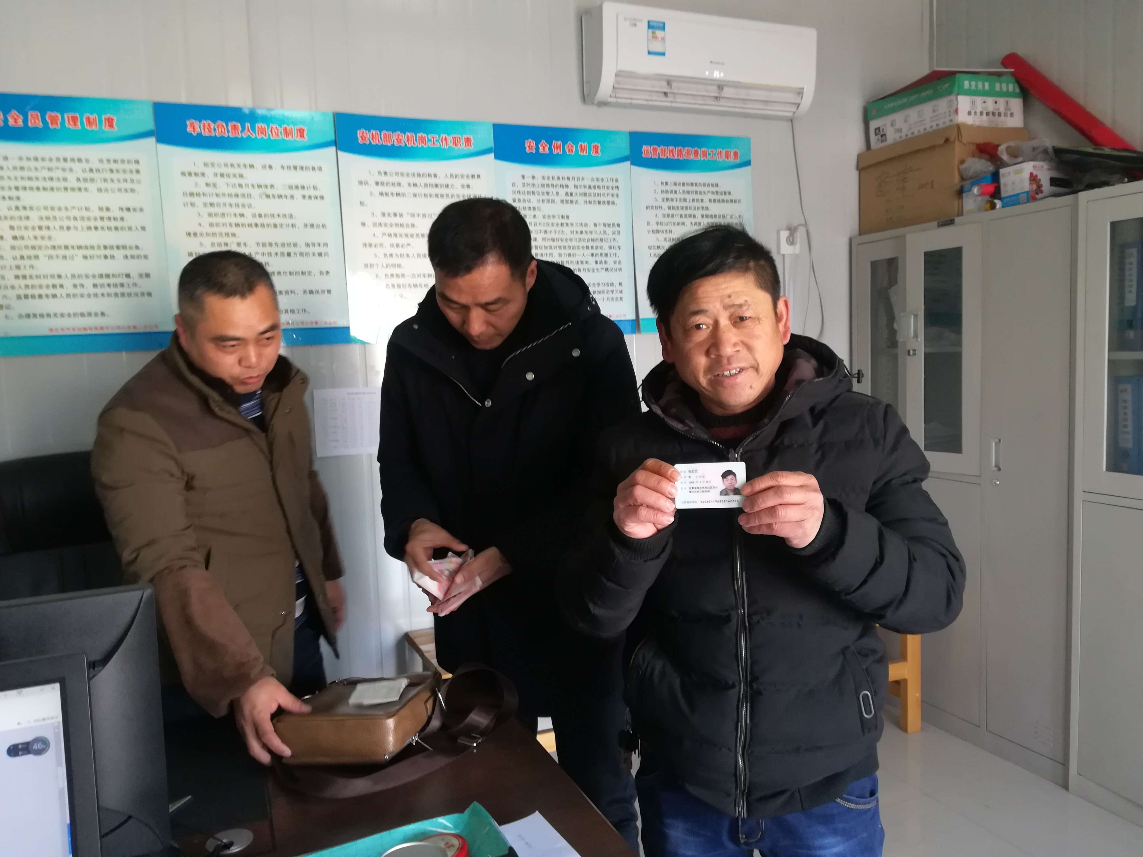 下午,失主來到縣開發(fā)區(qū)終點(diǎn)站調(diào)度室,劉新經(jīng)過一番詢問,確定是失主遺失的物品后,當(dāng)場交還,失主連忙表示感謝。