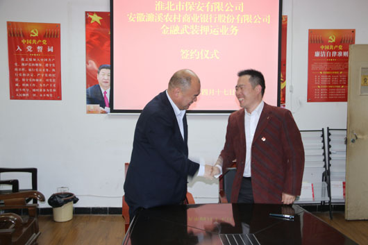 淮北市保安有限公司與安徽濉溪農(nóng)村商業(yè)銀行股份有限公司舉行金融武裝押運(yùn)業(yè)務(wù)簽約儀式