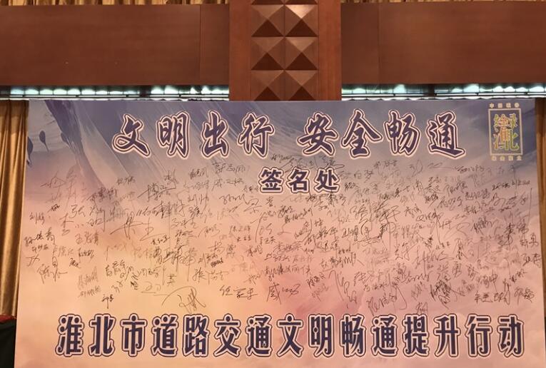 啟動儀式上,市政府副市長、公安局黨委書記、局長章銀發(fā)動員講話,動員全市各行各業(yè)積極參與到“文明出行 安全暢通”淮北市道路交通文明暢通提升行動計(jì)劃中去。與會的來自各行各業(yè)的代表共同觀看了文明交通公益廣告招貼畫作品,并紛紛在安全出行簽名欄上簽字。
