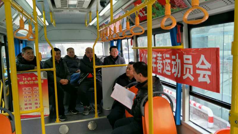2019年春運(yùn)已經(jīng)啟動(dòng),公交第二分公司全體員工將放棄與家人團(tuán)聚,同心協(xié)力、攻堅(jiān)克難、千方百計(jì)保障公交路路暢通,務(wù)必打贏2019年安全生產(chǎn)第一仗,公交人將文明駕駛、規(guī)范操作、微笑迎客、熱情服務(wù),保障各地賓朋和市民百姓出行安全、方便、快捷,為市民度過喜慶、歡樂、祥和的新春佳節(jié)交上一份滿意的答卷。