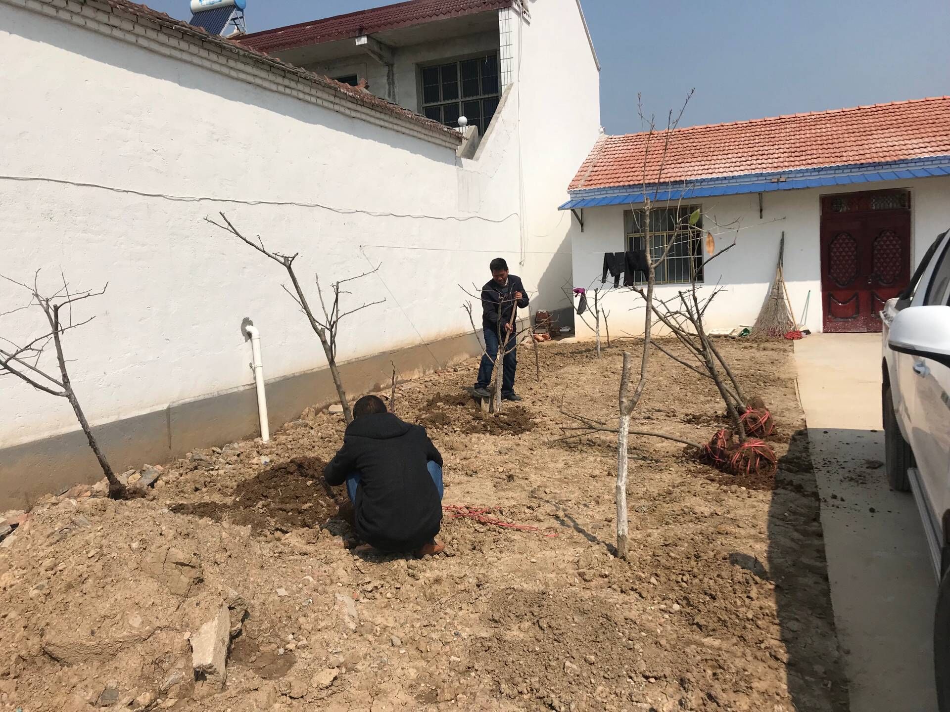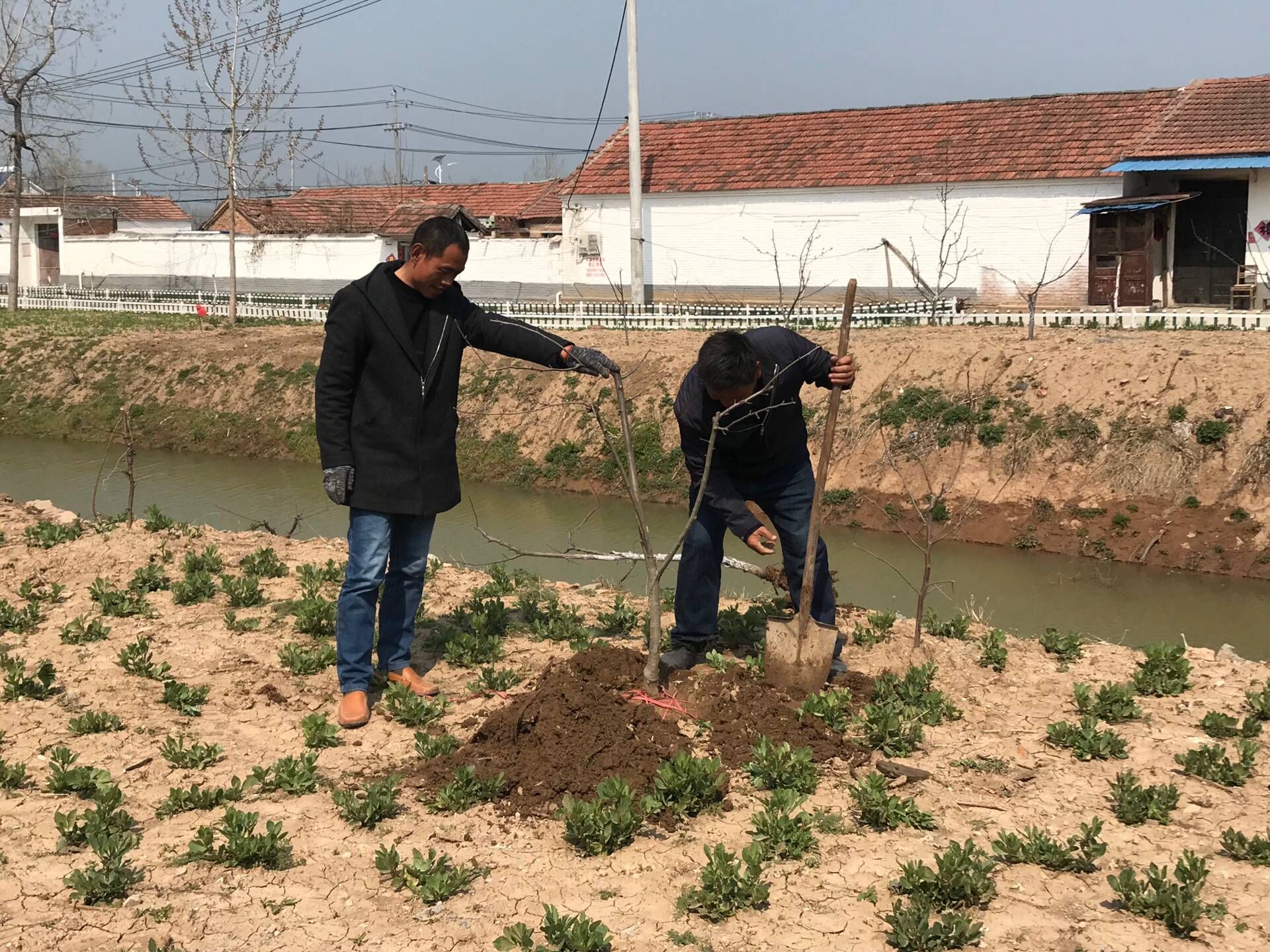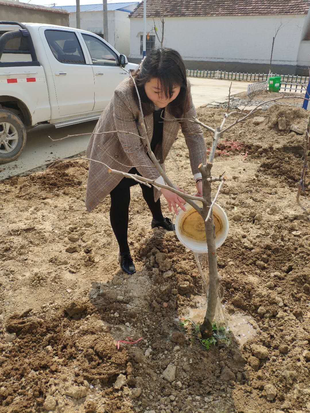 生態(tài)景觀公司扶貧小組一行4人,3月25日驅(qū)車帶著5棵蘋果樹苗來到火神廟村呂秀英老人家進行樹苗補種。大家分工植樹,有的挖坑,有的扶樹,有的培土,有的澆水,每道工序有條不紊,一片繁忙。扶貧小組成員不辭辛苦,以實際行動投身到扶貧工作中去,為貧困戶獻出一份愛心,點燃一盞希望。助力貧困戶加快脫貧致富步伐,共同邁入全面小康。