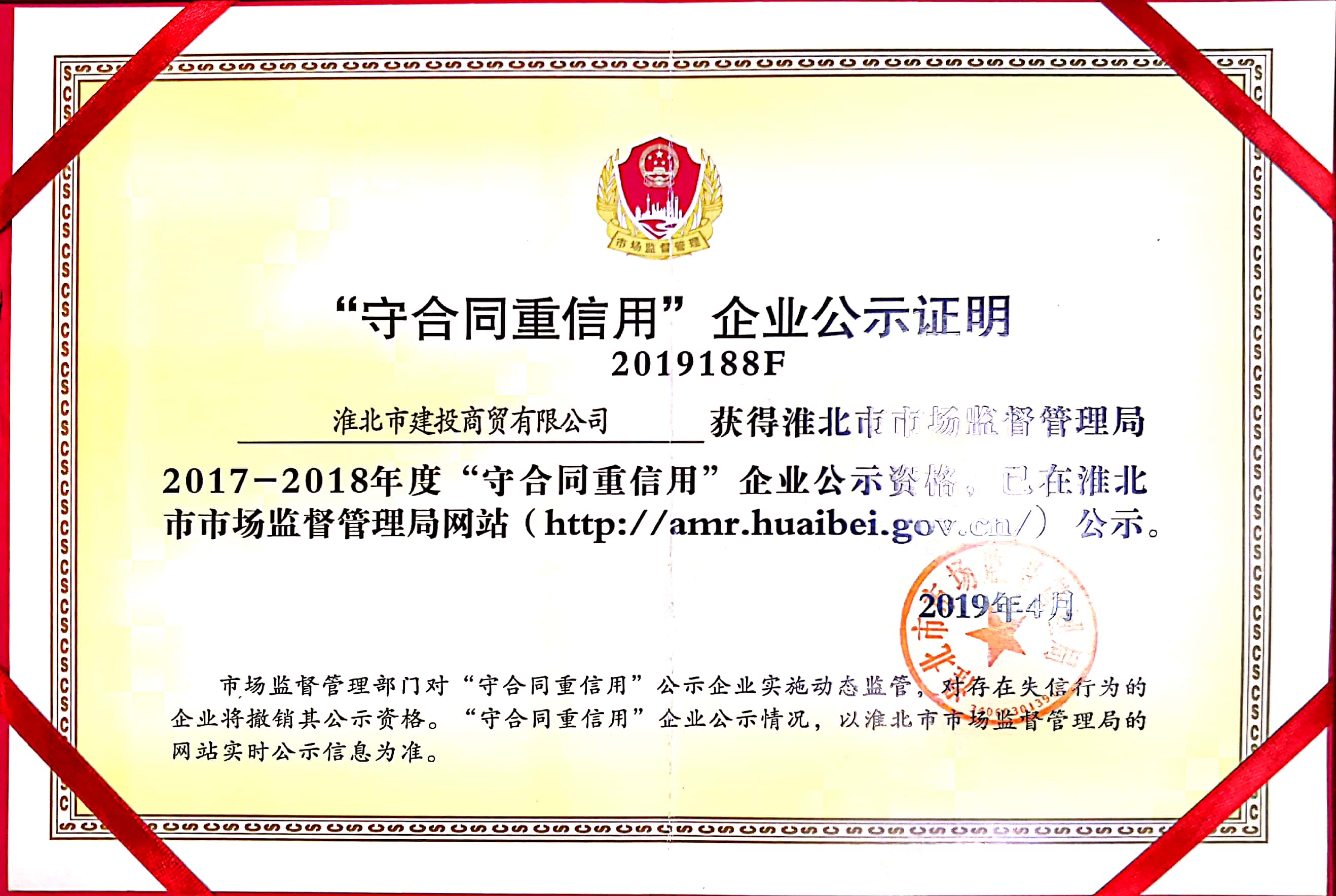 淮北市建投商貿(mào)有限公司獲此殊榮,有賴社會各界對公司的信任和支持,“守合同重信用”榮譽(yù)是企業(yè)的金字招牌,能有效提升企業(yè)自身誠信管理水平及內(nèi)部管理標(biāo)準(zhǔn)。