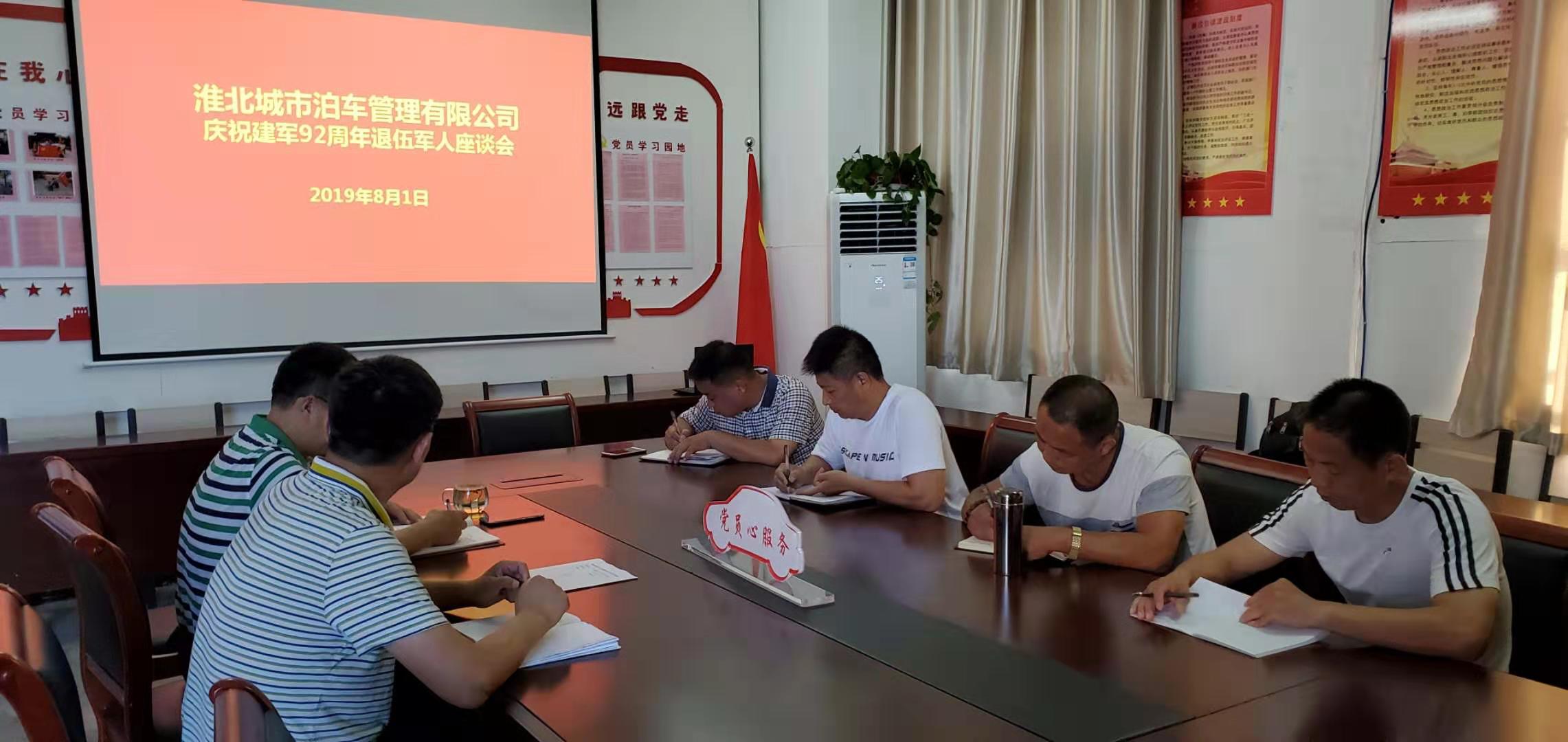 為慶祝建軍92周年,8月1日上午,城泊公司組織退伍復(fù)轉(zhuǎn)軍人職工召開(kāi)了退伍軍人座談會(huì)。