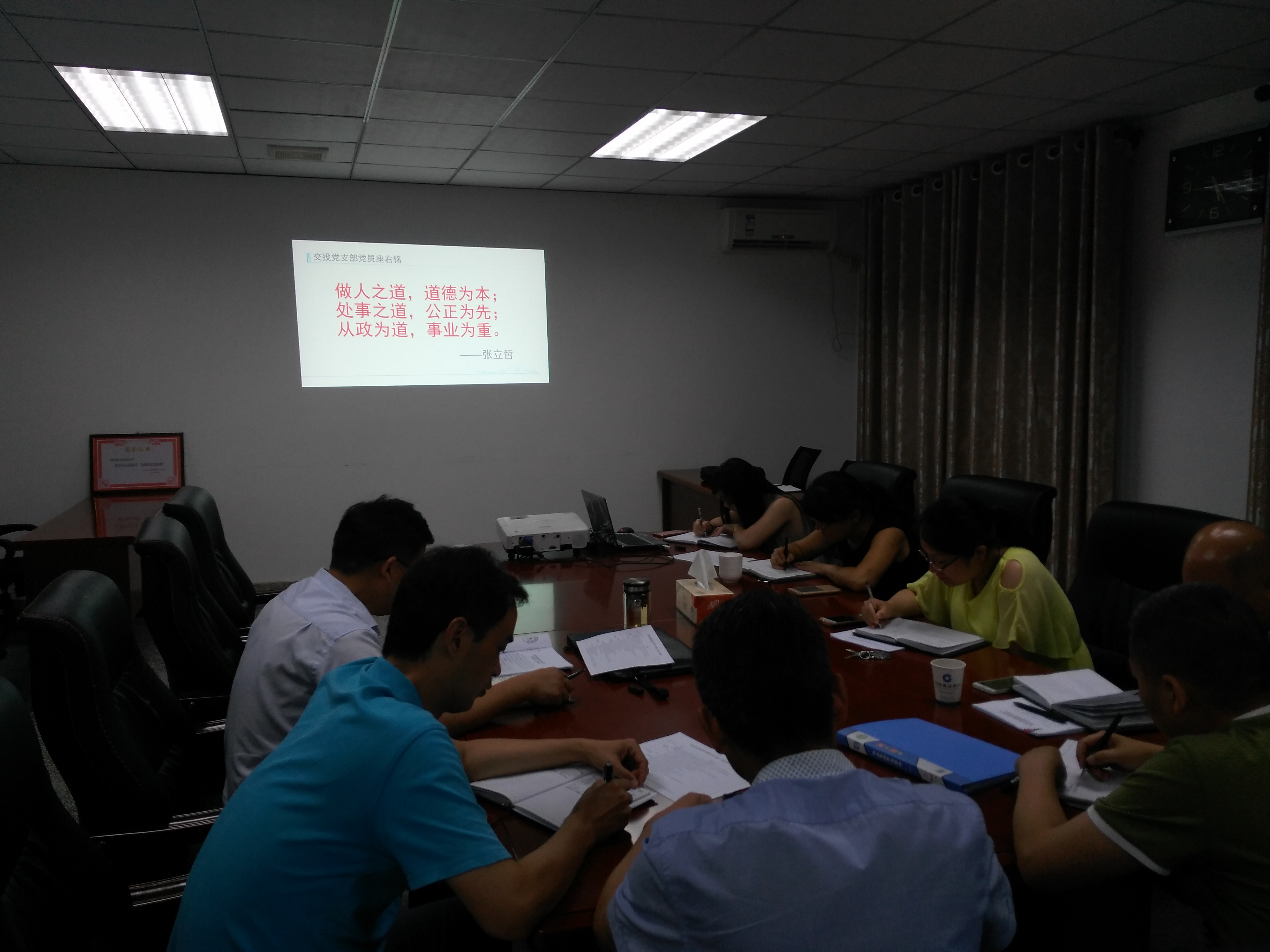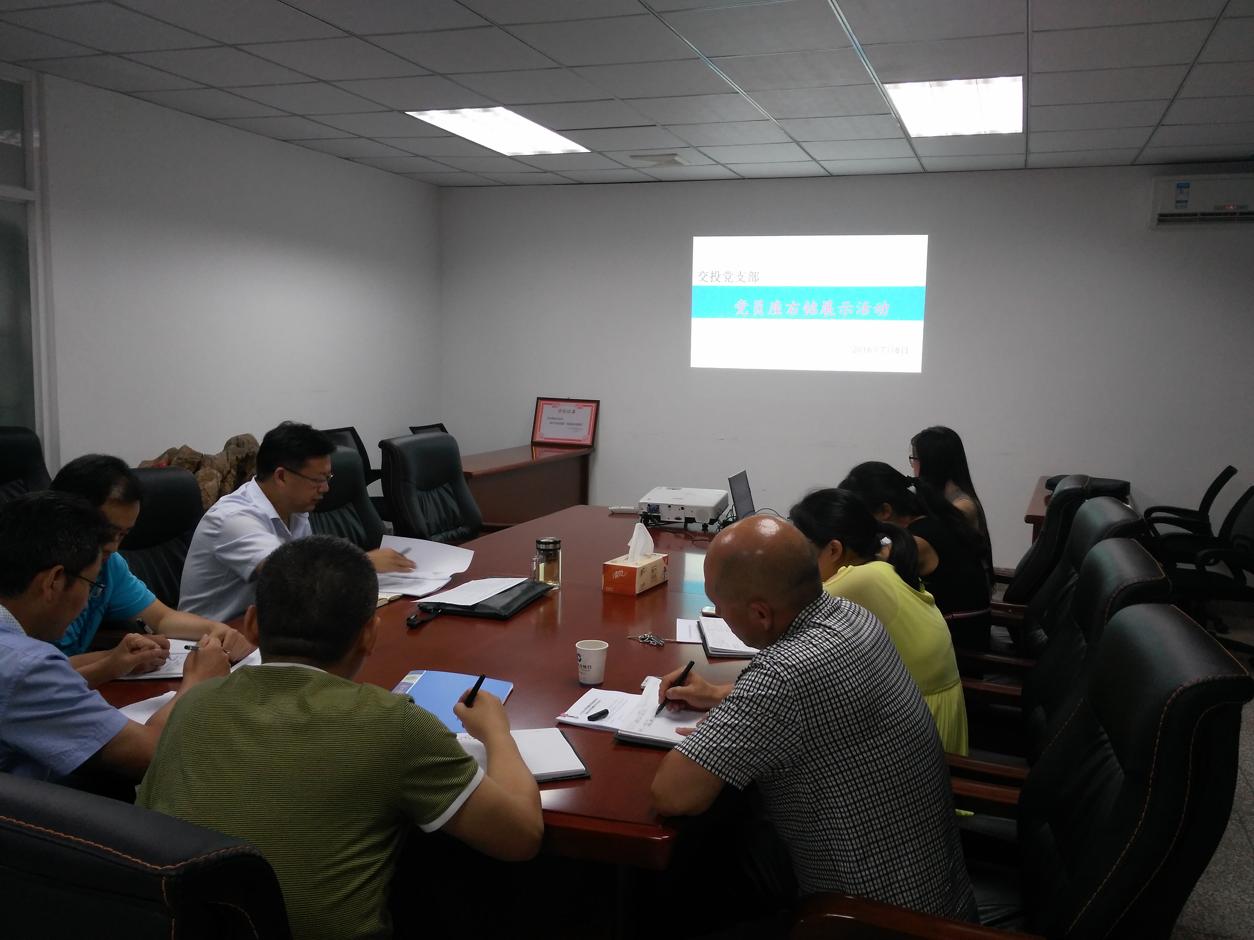 7月10日上午,市交投黨支部組織支部全體黨員在交投會議室開展“黨員座右銘展示”活動?;顒又赋觯h員座右銘是黨員同志保持清正廉潔的名言警句,是每個共產(chǎn)動員為社會主義事業(yè)不斷奮斗的不竭動力。交投黨員同志要時刻將自己的座右銘記在心上,實踐到行動中去。