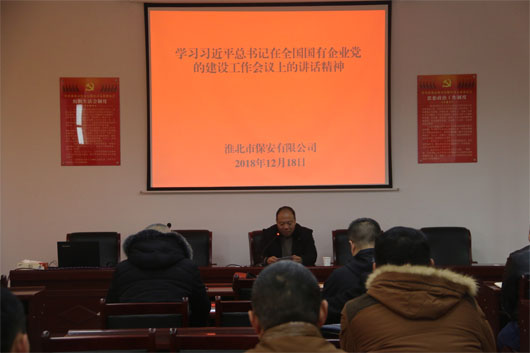 2018年12月18日,淮北市保安有限公司組織黨員干部在公司黨支部書(shū)記的帶領(lǐng)下,認(rèn)真學(xué)習(xí)了中共中央總書(shū)記、國(guó)家主席、中央軍委主席習(xí)近平全國(guó)國(guó)有企業(yè)黨的建設(shè)工作會(huì)議的講話精神。