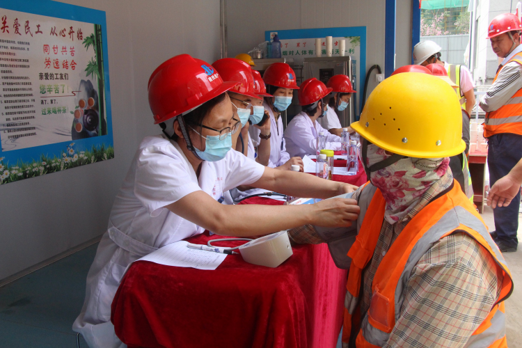 關愛身心健康。黨支部把農(nóng)民工健康管理納入日常工作,邀請醫(yī)院專家,不定期開展“愛心義診”活動,主要包括血液檢測、測量血壓、中醫(yī)把脈、常見疾病中醫(yī)疑難解答等項目。活動現(xiàn)場,醫(yī)務人員耐心細致地為農(nóng)民工們抽取血液、查體看病,進行血壓、心率等各項常規(guī)檢查,并現(xiàn)場開展健康咨詢,為工人解答各種健康保健知識以及醫(yī)學常識。截止目前累計義診120人次。