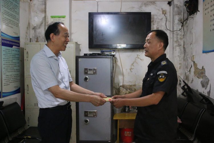 建黨100周年臨近,2021月6月30日10時(shí),集團(tuán)公司黨委委員、副總經(jīng)理唐世軍在淮北市保安有限公司黨支部副書記徐彥超的陪同下來到押運(yùn)一中隊(duì)中國銀行看望慰問保安公司困難黨員的閆新杰黨員同志,送去黨組織的關(guān)懷和溫暖。