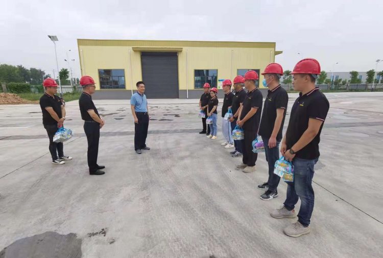 為做好生產(chǎn)一線職工防暑降溫工作,8月12日下午,集團(tuán)公司黨委專職副書記陳偉深入淮北市江南建設(shè)發(fā)展股份有限公司為奮戰(zhàn)在生產(chǎn)一線的職工送去防暑降溫用品。期間與職工親切交談,關(guān)心他們生產(chǎn)生活情況,希望他們繼續(xù)發(fā)揚(yáng)吃苦耐勞、攻堅(jiān)克難的工作作風(fēng),為集團(tuán)公司高質(zhì)量發(fā)展作出新的更大的貢獻(xiàn).同時(shí)要求該公司持續(xù)抓好安全生產(chǎn),嚴(yán)格按照市和集團(tuán)公司常態(tài)化疫情防控有關(guān)要求,統(tǒng)籌協(xié)調(diào),落實(shí)落細(xì)防控措施,構(gòu)筑抵御疫情的嚴(yán)密防線。